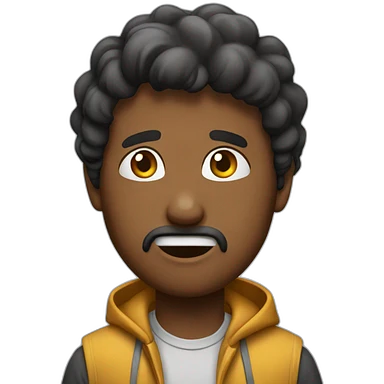 adventurer with goatee beard (no beard on cheeks), short hair, glasses, bandana on head and backpack emoji