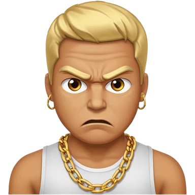 cantante de rap, con estilo urbano, de piel morocha, sujetando un micrófono, cantando. que se vea de la cintura para arriba, puede contener accesorios clave de un rapero. emoji