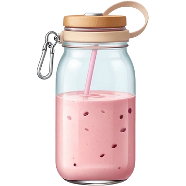 Minimal airport snack moment: clear infused water glass, pastel pink smoothie jar, beige bag strap visible emoji