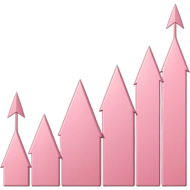 Pastel pink stock chart arrows pointing upward, smooth minimal lines emoji