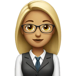 lady accountant with glasses and grey shoulder length hair with calculator emoji