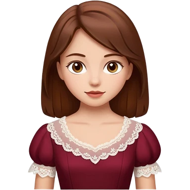 Bordo elbise giyen ama beyaz danteller olan çok guzel kahverengi saçlı bir kız resimi emoji