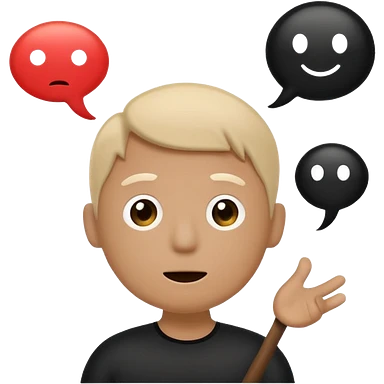 A white and black stick mand with a chat bubble coming from his mouth (encircled) emoji
