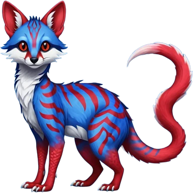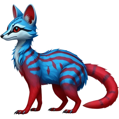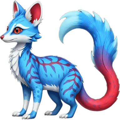 Feral Rare Fantasy vibrant cyan-cobalt-blue-crimson-red-gradients-colored colorful Vernid-Sergal-Genet-Trico-species by LiLaiRa, random markings, tufted tail, tufted ears, full body emoji