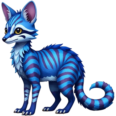 Feral Rare Fantasy vibrant dark shady shaded detailed deep-dark-cobalt-blue-gradients-colored colorful Vernid-Sergal-Genet-Trico-species by LiLaiRa, random markings, tufted tail, tufted ears, full body emoji