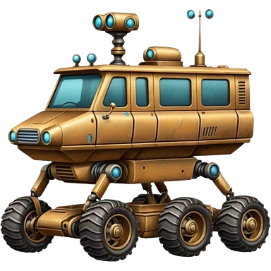 Actively-leaning antique tall truck robotic twenty passenger comfort Mars alien rover Scooby Doo Mystery Machine emoji | AI Emoji Generator