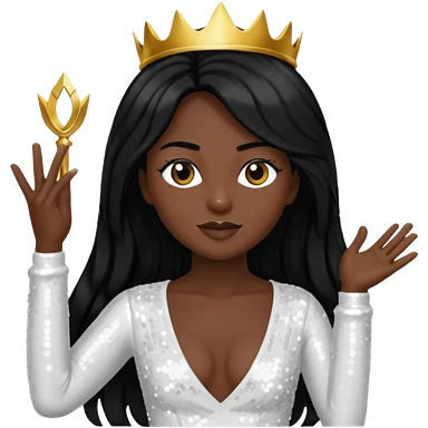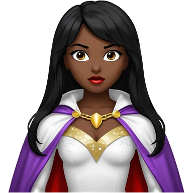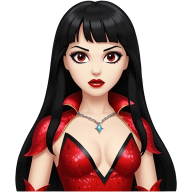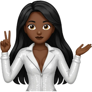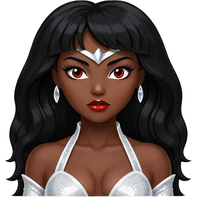 Victory from Vampirella with dark skin, long black hair, white sequin outfit emoji