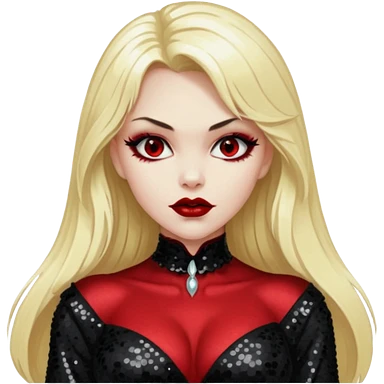 Draculina from Vampirella with long blone hair, black sequin outfit emoji
