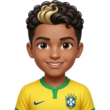 create a BOY with curly black short hair with blond highlights and make sure add a brazilian shirt yellow for the character to be white emoji