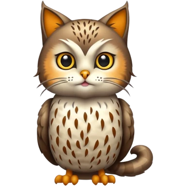 A animal with a Owl body brown tabby cat head and tail full body emoji