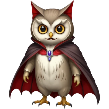 A animal with a Owl body cat head and tail full body vampire suit emoji
