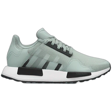 white guy in gradient green blue suit with blonde hair and black sunglasses standing with adidas shoes emoji
