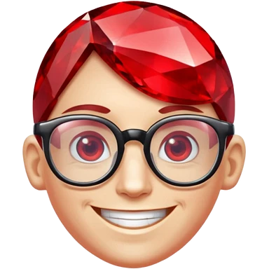 A single red crystal gemstone character wearing glasses, irregular with faceted very sharp sides, smile, , high detail, emoji