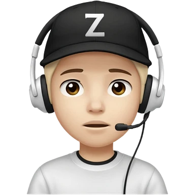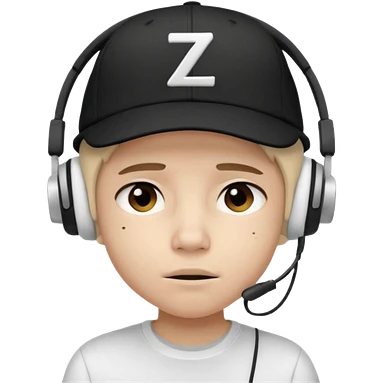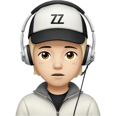 Adolescente com fone branco no ouvido é um boné preto, com uma carinha de sono e uns z z z emoji