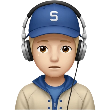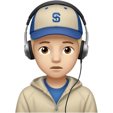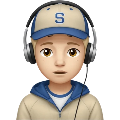 Adolescente com fone no ouvi é um boné, com uma carinha de sono emoji