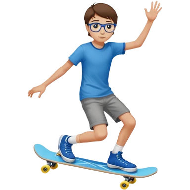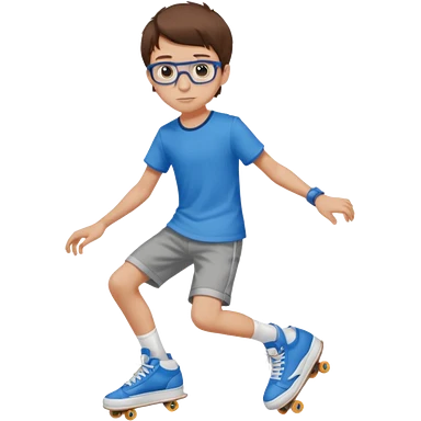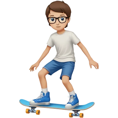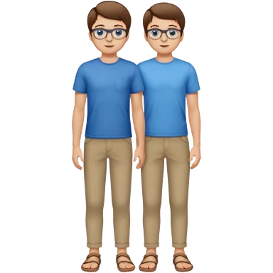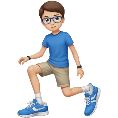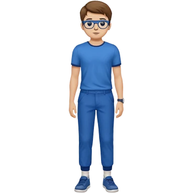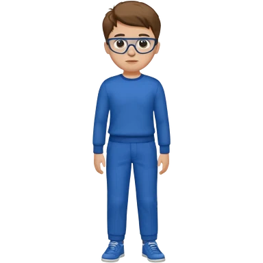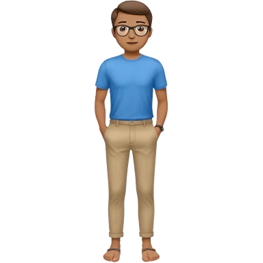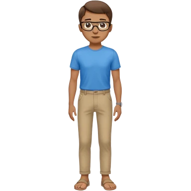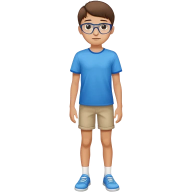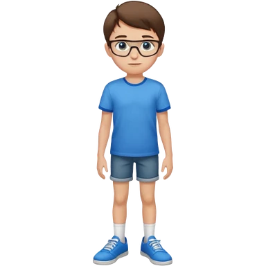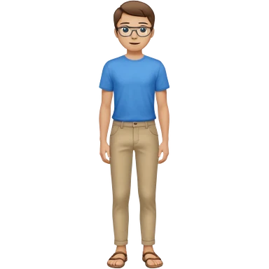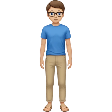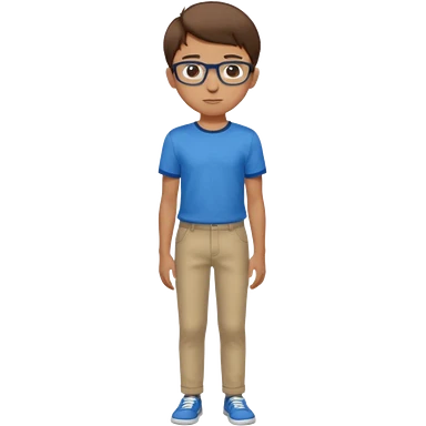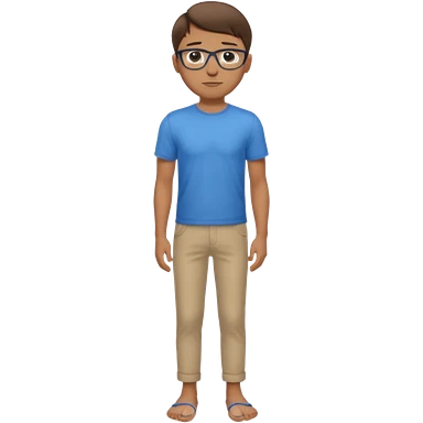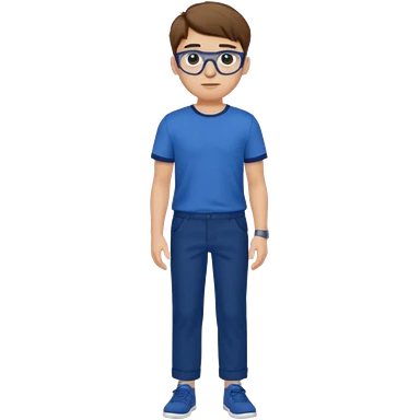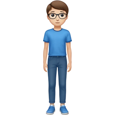 adolescent garçon taille moyenne corpulence maigre cheveux chatain court yeux bleus lunettes photo de pieds en pantalon emoji | AI Emoji Generator