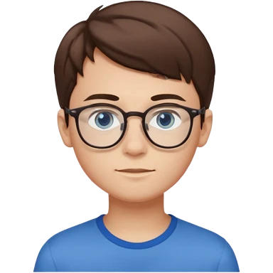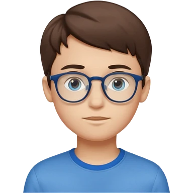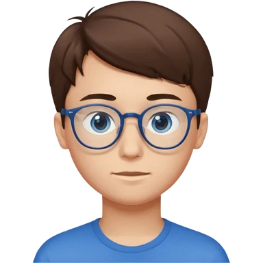 Jeune garçon yeux marrons cheveux brun lunettes bleus emoji