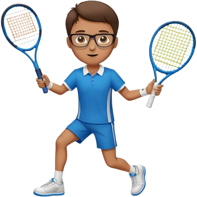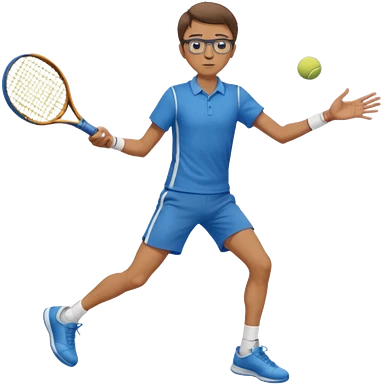 homme l'air cool taille moyenne corpulence maigre cheveux chatain court yeux bleus lunettes photo de pieds en pantalon qui fait du tennis emoji
