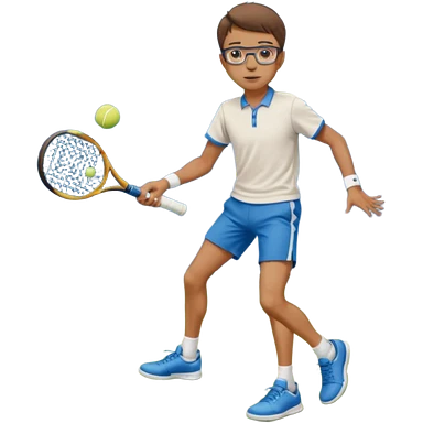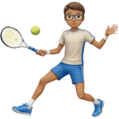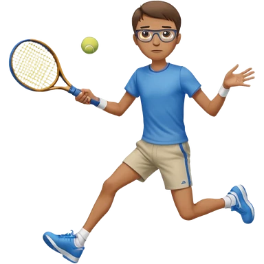 homme l'air cool taille moyenne corpulence maigre cheveux chatain court yeux bleus lunettes photo de pieds en pantalon qui fait du tennis pe emoji