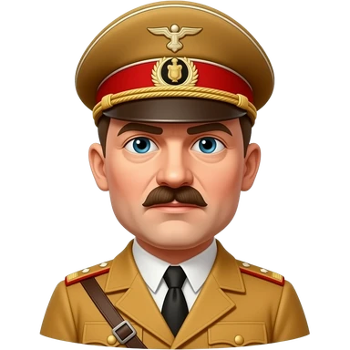 Adolf Hitler had an oval face with fair skin. His eyes were blue and his eyebrows were dark and somewhat bushy. Above his upper lip he wore a small, brush-like mustache, known as a "toothbrush moustache". His emoji