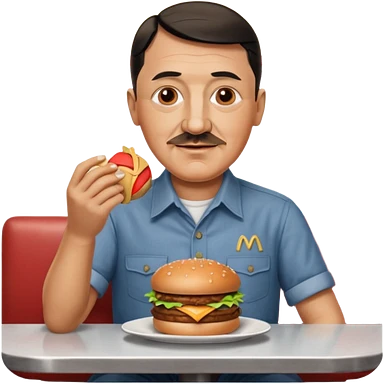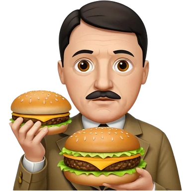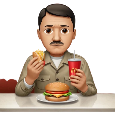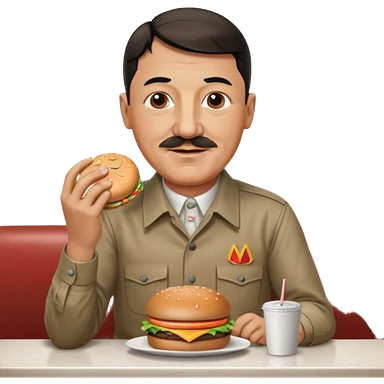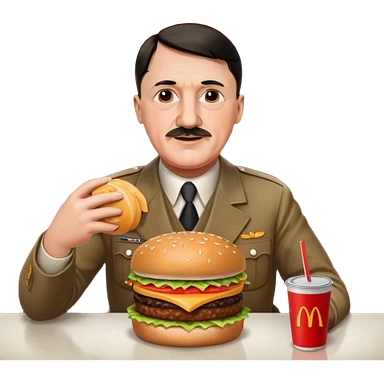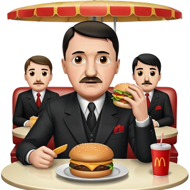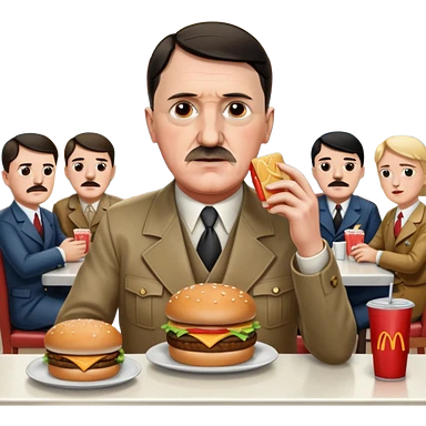 adolf hitler holding a big mac while sitting in a diner while being surrounded by his enemies emoji