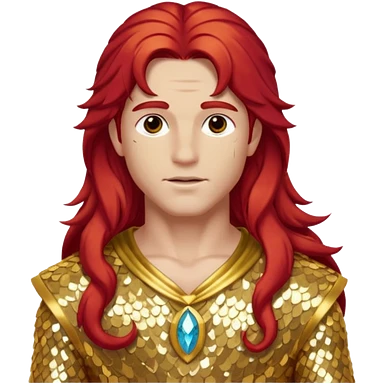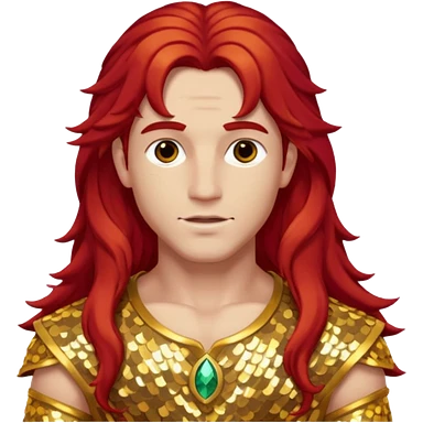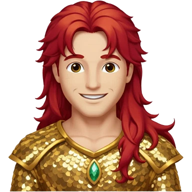 Adonis, God of Beauty from Gods and Goddesses with long red hair, gold sequin outfit emoji