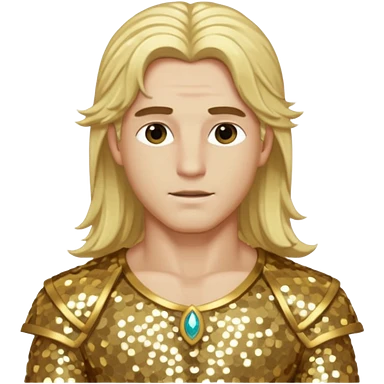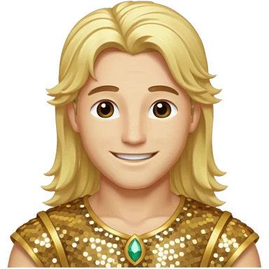 Adonis, God of Beauty from Gods and Goddesses with long blonde hair, gold sequin outfit emoji