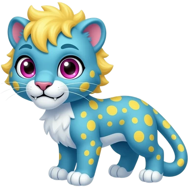 Adorable Cyan Four-legged digitigrade Panther with big adorable eyes, yellow spots, yellow mane, and magenta eyes, and snagletooth emoji