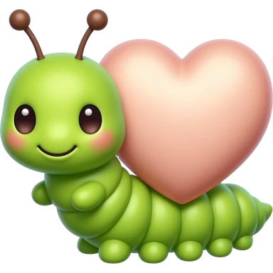 Adorable itty bitty tiny little catipillar crawling up the side of a big heart emoji