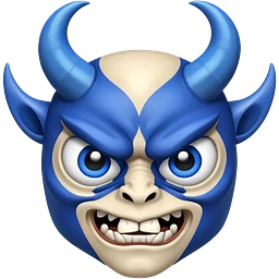 Face: Purple Demon Mask: Maroon Horns: Blue Mouth: Red Demon Eyes: Cyan Regular Eyes: Green emoji