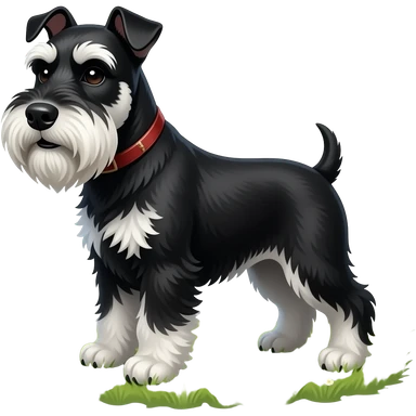 Cinematic Cute Miniature Schnauzer Portrait Emoji, Head cheerfully cocked with expressive, twinkling eyes and a neatly trimmed, adorable salt-and-pepper fur, simplified yet endearingly detailed, glowing with a bright, friendly radiance, high shine, exuding smart and spunky charm, styled with a delicate, whimsical outline, capturing the essence of a cute Miniature Schnauzer that appears ready to scamper off the screen with delightful energy! emoji