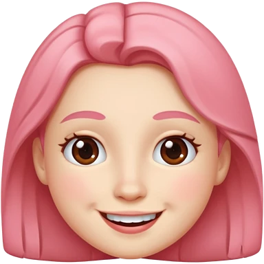 Gordita, ojos pequeños de color cafe oscuro, labios pequeños y rosados, piel trigueña, orejas pequeñas, cabello largo lazio y negro. emoji