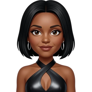 Naturi Naughton from 3lw with dark brown eyes, black short hair, black metallic halter dress, silver earrings emoji