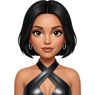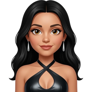 Adrienne Bailon from 3lw with brown eyes, long golden brown hair, black metallic halter dress, silver earrings emoji | AI Emoji Generator
