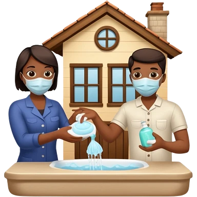 Give me emojis that represent corona-time safety rules such as: keep your distance, wear a mask, wash hands, avoid crowds, sanitize regularly, stay home, and no handshakes. Use only relevant emojis. another except this emoji