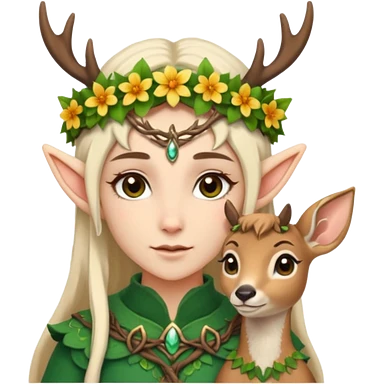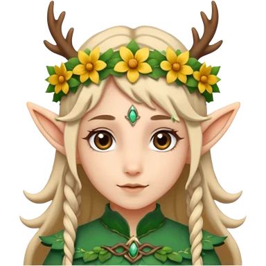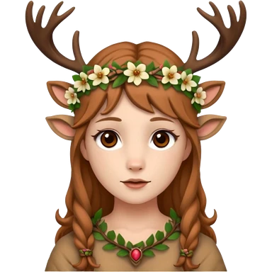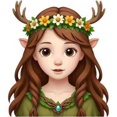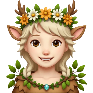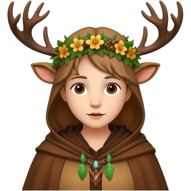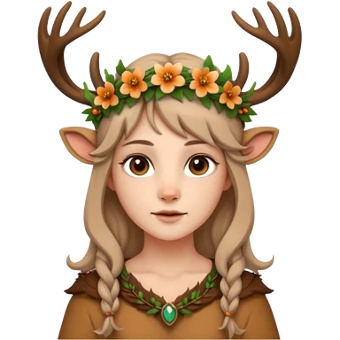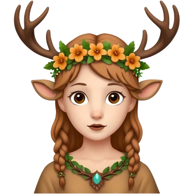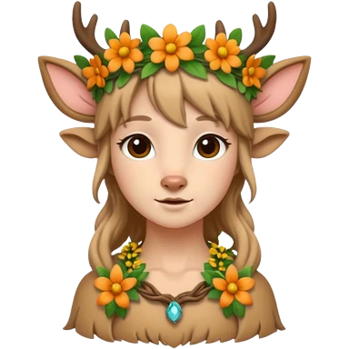 Adult Cute Druid human like fawn with flowers emoji | AI Emoji Generator