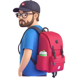 adventurer with backpack, small beard, glasses and backwards baseball cap emoji