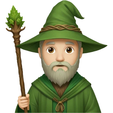 Forest Wizard – green robe, wooden staff, leafy beard emoji