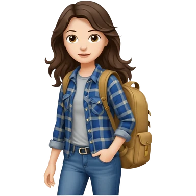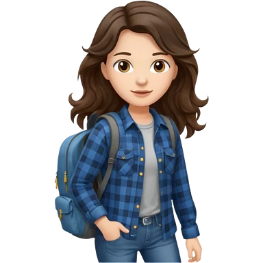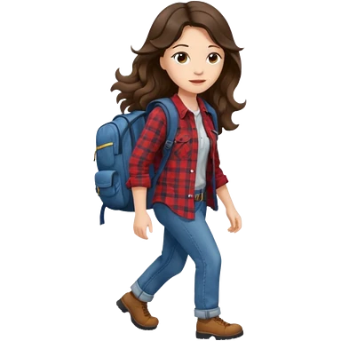 aestethic brunette long wavy hair walking with a backpack emoji
