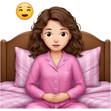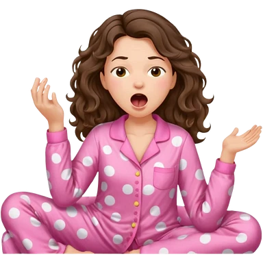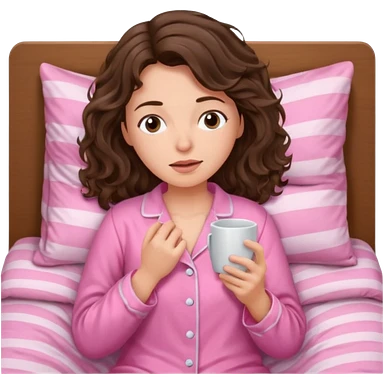 aestethic brunette wavy hair, waking up with a pink pajama emoji