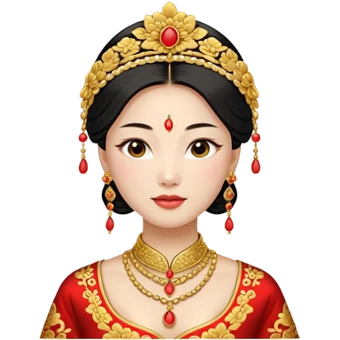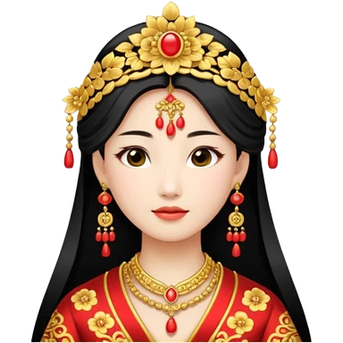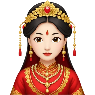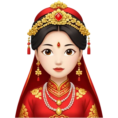 Chinese bride getup, heavy jewelary, traditional. emoji