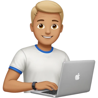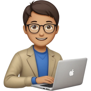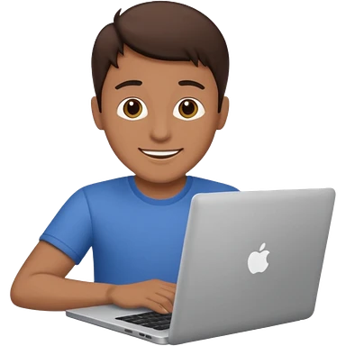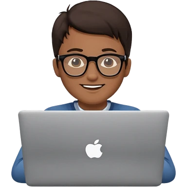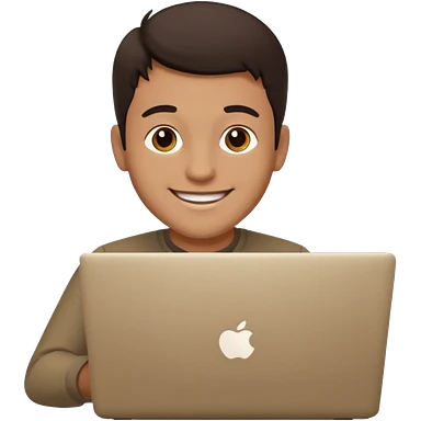happy man on laptop with light brown skin color , with dark hair front of laptop emoji