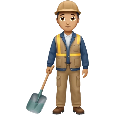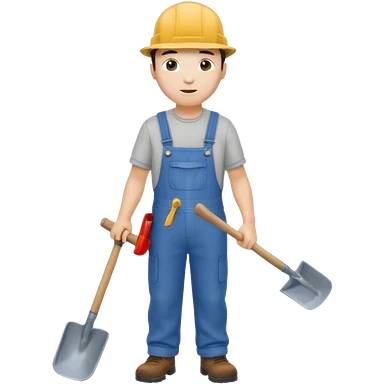 male worker 1950 flat hat and overalls and shovel standing emoji