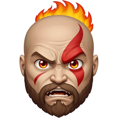 A custom emoji design of "Kratos" from "God of War", "Rage mode with fire eyes", "Apple Emoji Style", isolated on white background, clean lines, high quality sticker style, vector graphics, minimalistic emoji