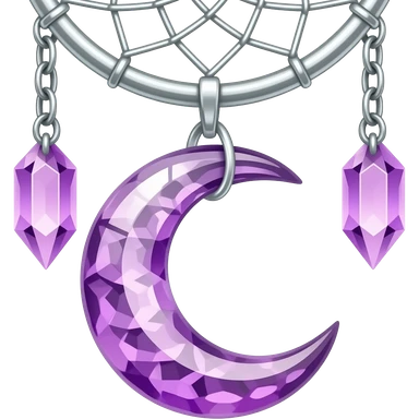 Aesthetic shiny sparkly violet crescent hanging from silver chain dreamcatcher-suncatcher hanging lilac crystals decoration emoji