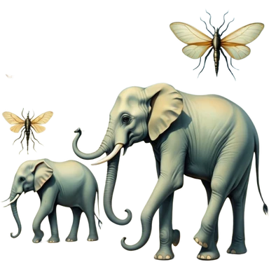 aesthetic brilliant divine lighting, oil paint - mystical elephants from Salvador Dali's paintings with long legs like insects emoji