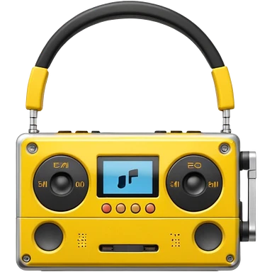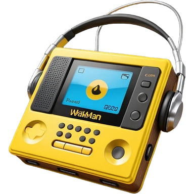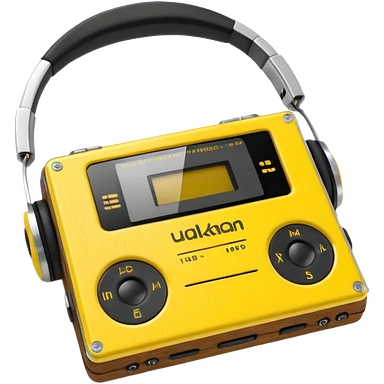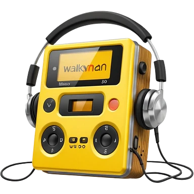 3D render of Walkman, vintage 1980s audio equipment aesthetic, tactile analog buttons, bright sports yellow plastic case with black foam headphones, mixed wood grain and brushed aluminum textures, Apple emoji style, isolated on white background --v 6.0 emoji