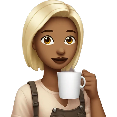 Aesthetic girl with blonde hair and blue eyes drinking coffee emoji | AI Emoji Generator