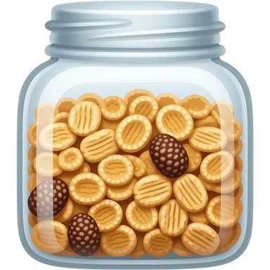 Transparent jar of strawberry smoothie topped with granola, minimal background emoji