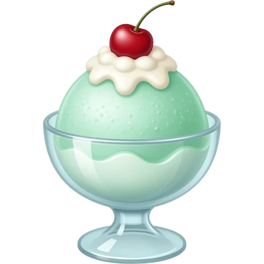 aesthetic korean bingsu emoji, mint green shaved ice with whipped cream and cherry, soft pastel colors, glossy texture, minimal clean design, cozy vibe emoji
